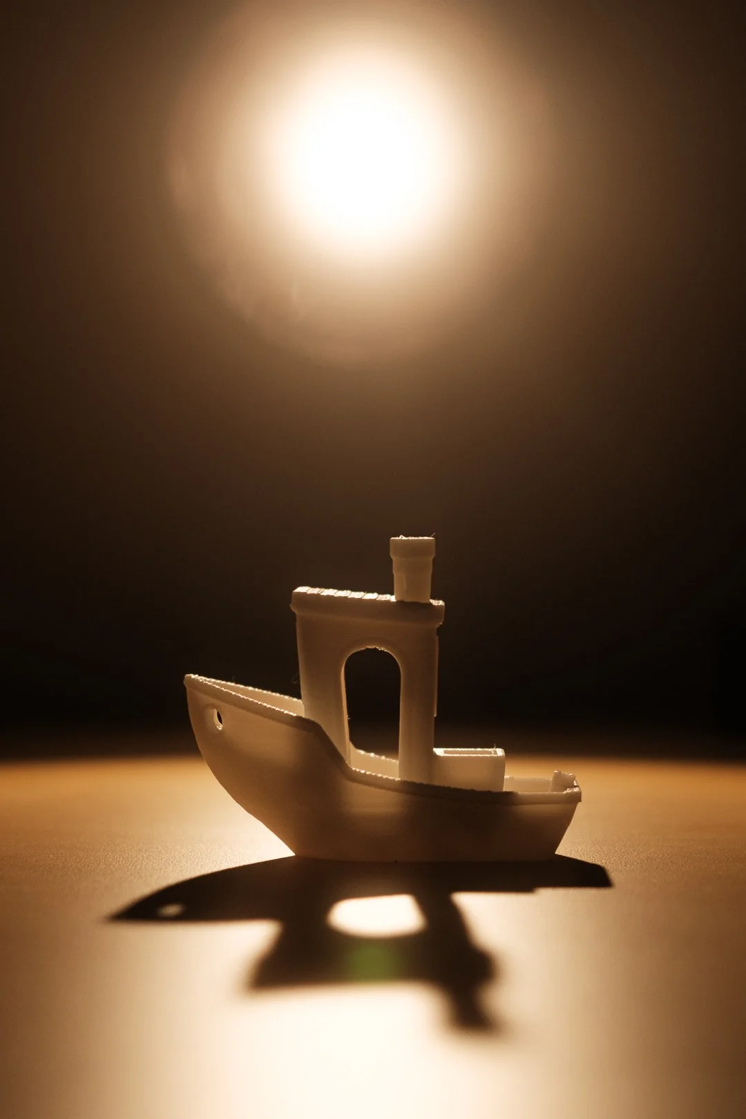 Or you could stay home and photograph a plastic boat inside a 3D printer at midnight.